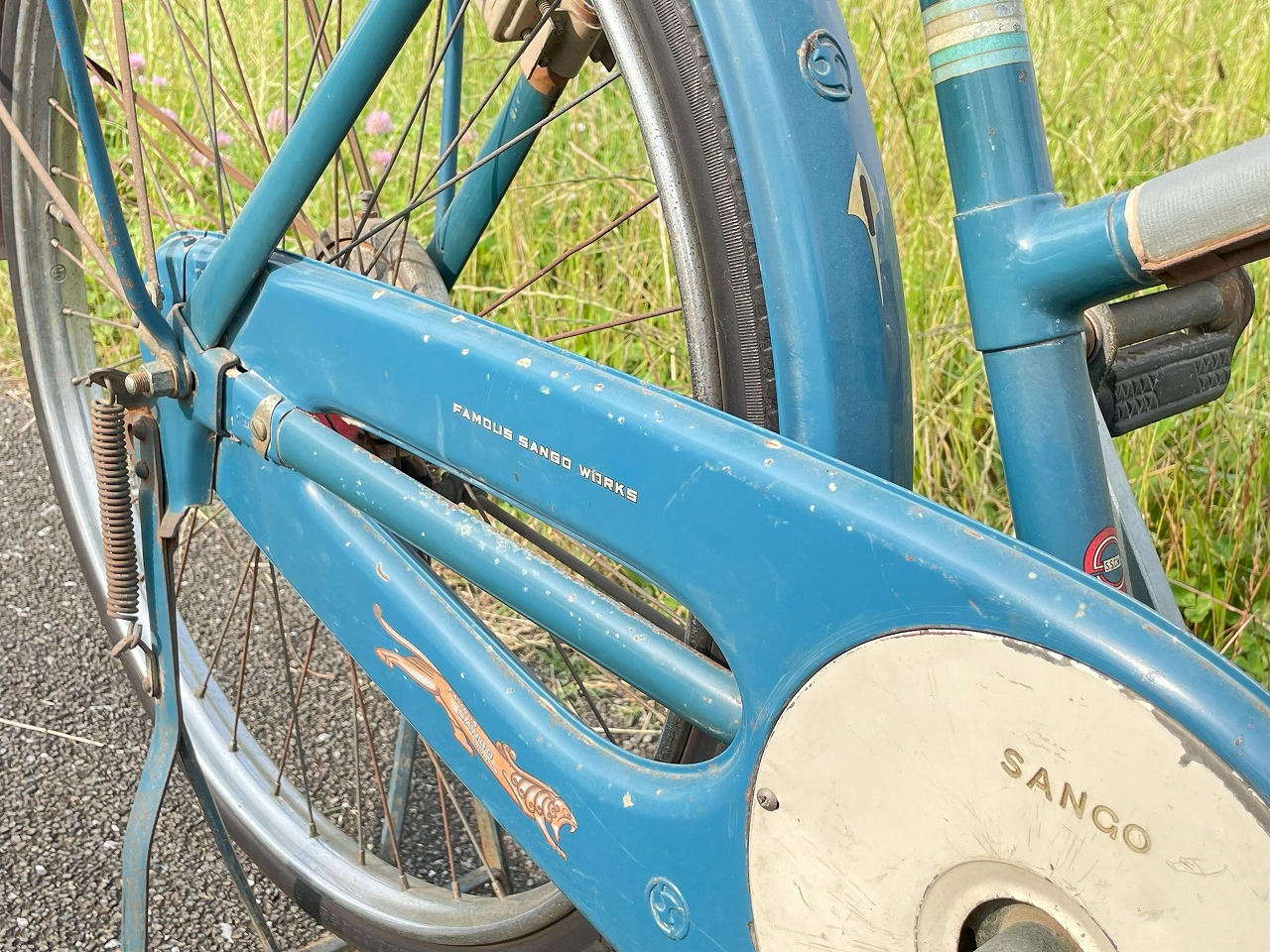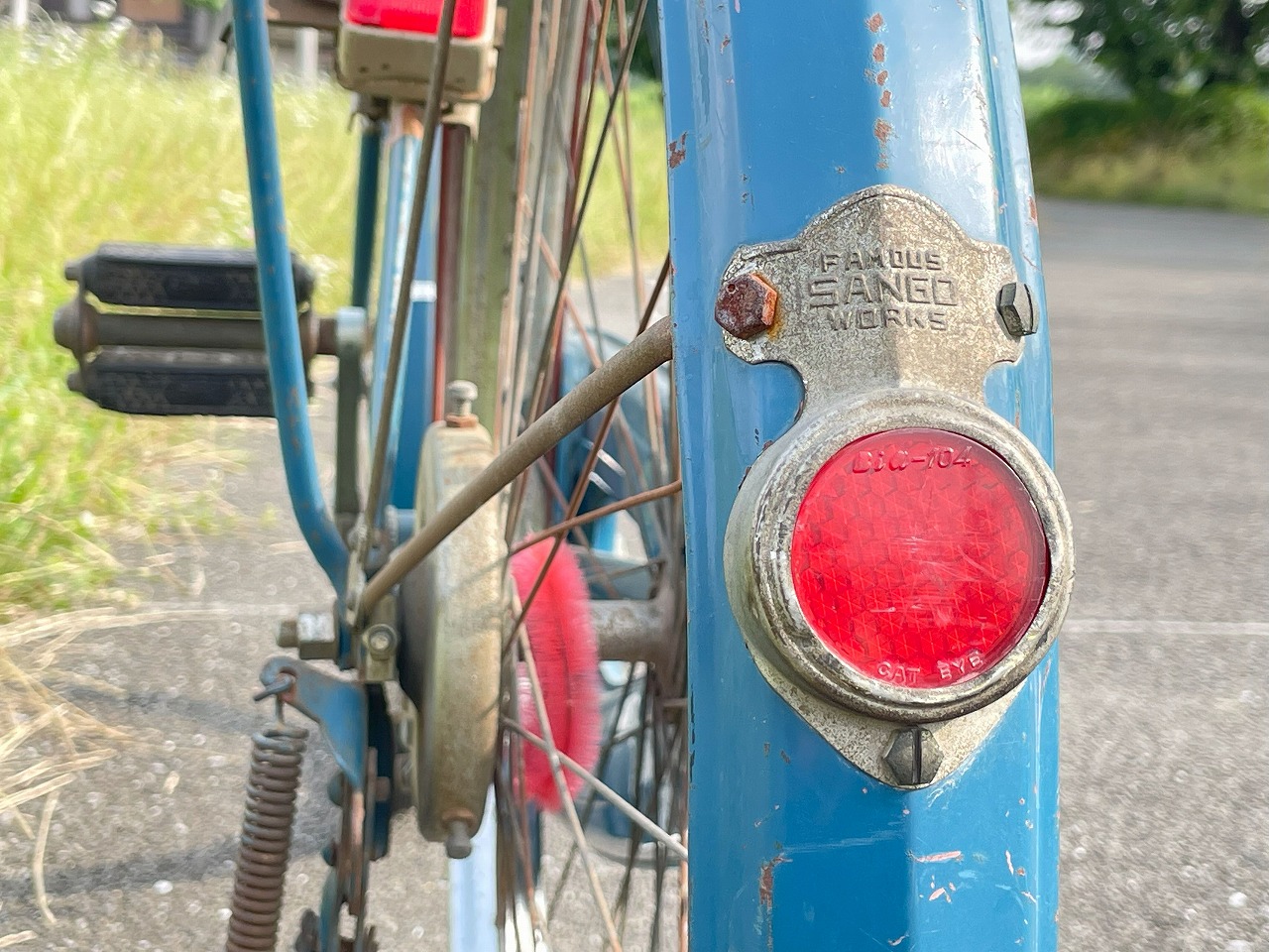 後タイヤもそろそろ限界ですが、井上護謨マークの古いタイヤですのでそのままにしています。